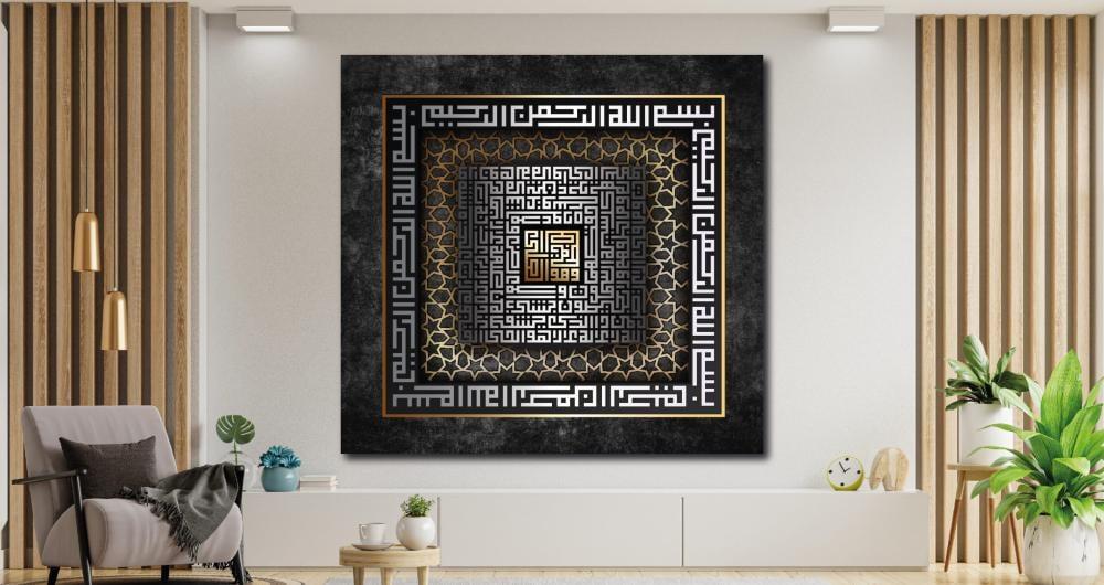 لوحة جدارية اسلامية بعنوان آية الكرسي بالخط التربيعي A34
