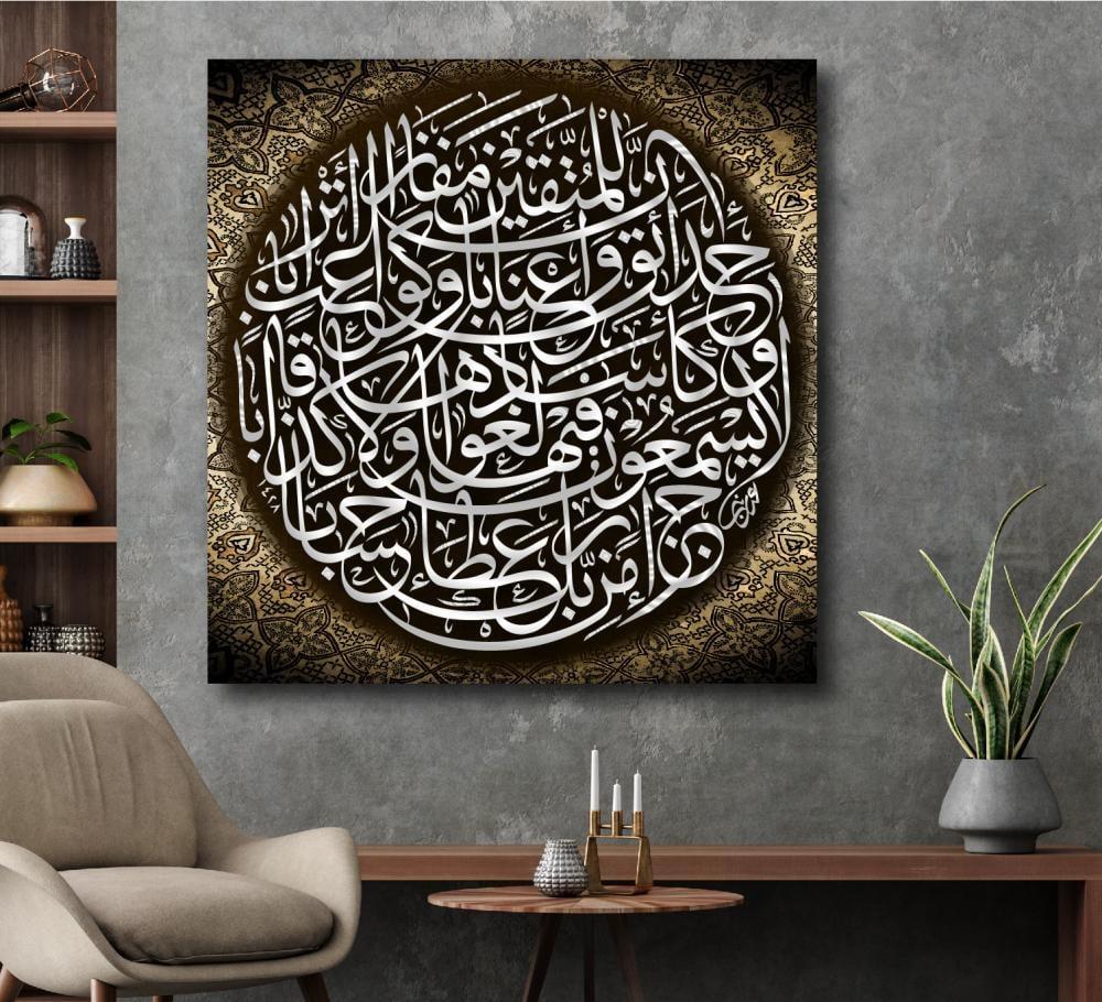لوحة جدارية فخمة بعنوان الاية الكريمة ان المتقين مفازا حدائق واعنابا
